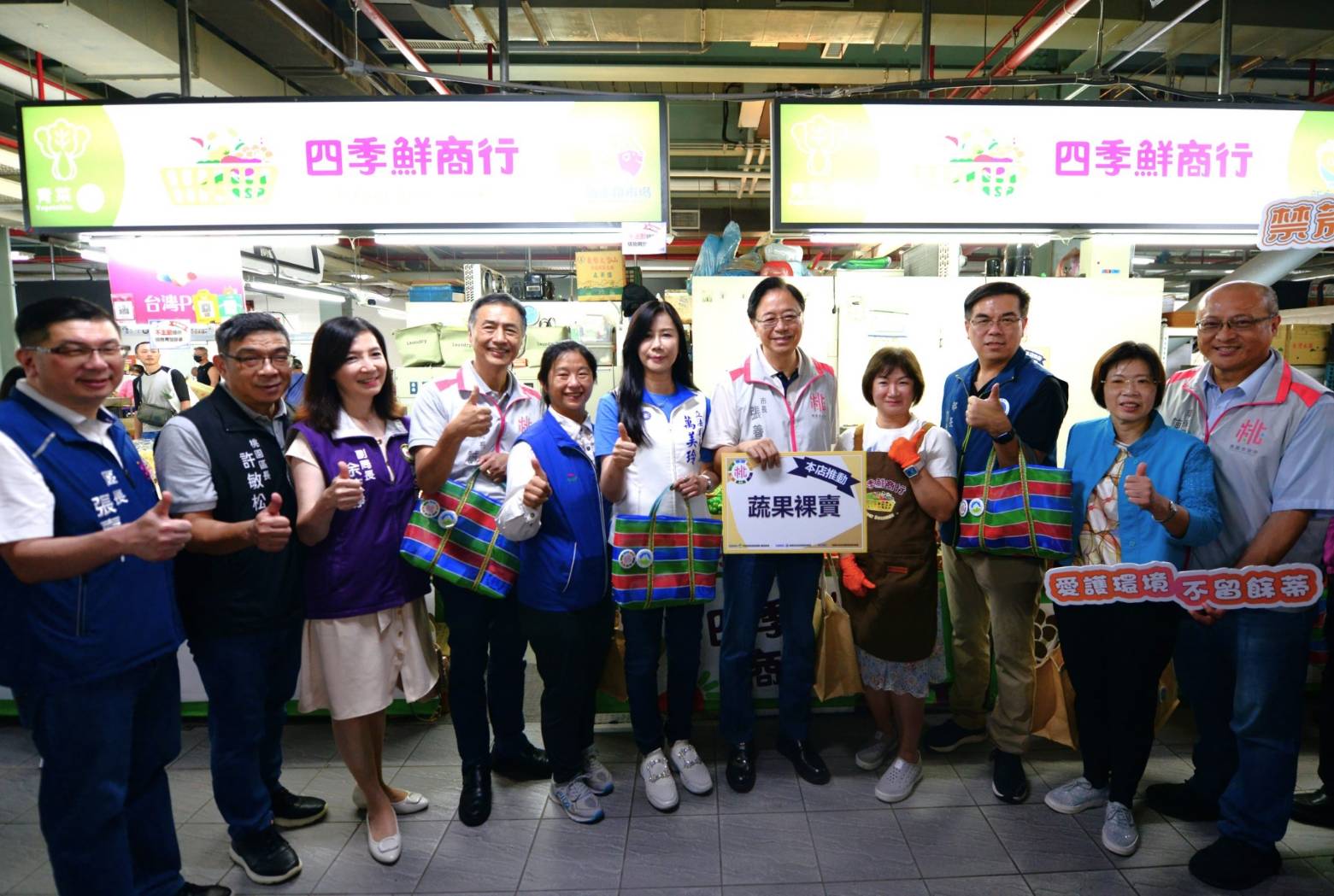 市長張善政表示,本市自去(112)年即開始以鼓勵及宣導方式推動桃園市11座公有市場攤商不主動提供購物用塑膠袋,並於新永和市場、南門市場及龍潭市場設置二手袋循環箱,以活化二手袋再利用次數,今(113)年6月起也持續於桃園市公有市場辦理民眾自備環保袋宣導活動,讓更多市民意識到減塑的重要性。